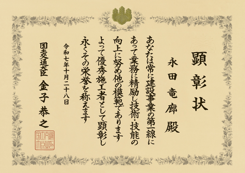 - 令和7年度 優秀施工者国土交通大臣顕彰(建設マスター)